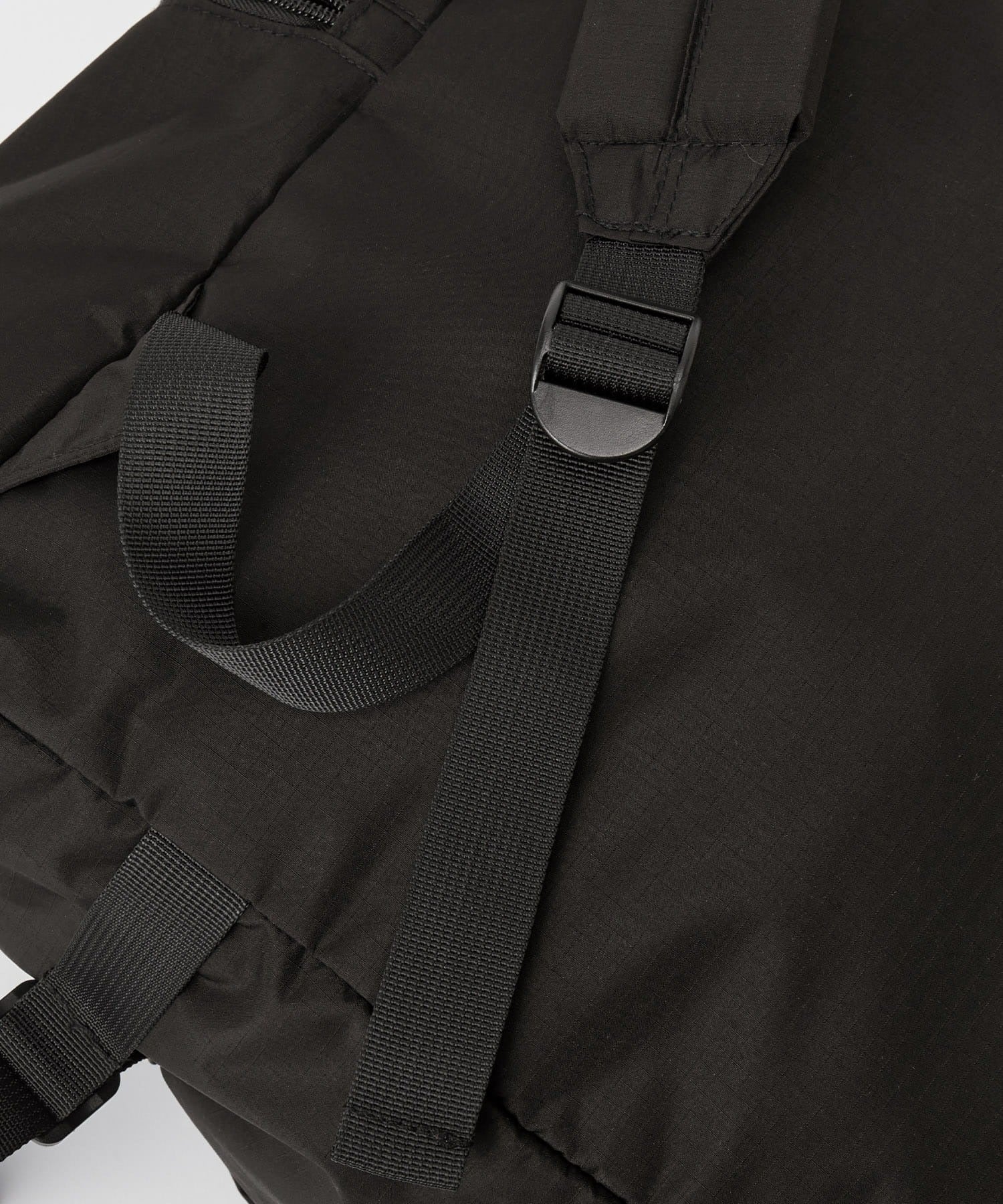 採用經防潑水加工處理的布料,耐用且具備防潑水機能,主空間具備可收納A3尺寸文件與筆電的超大容量,除了左右兩側的拉鍊口袋外,還有束口口袋與內部收納隔層,擁有出色的收納能力,適用於各種情境。正面有低調吸睛的品牌標籤,增添整體設計感,具備可摺疊的收納設計,收納方便、攜帶無負擔,除了肩背帶,還附有提把,無論手提或後背皆可依心情自由變化。