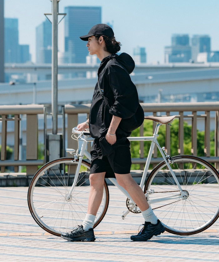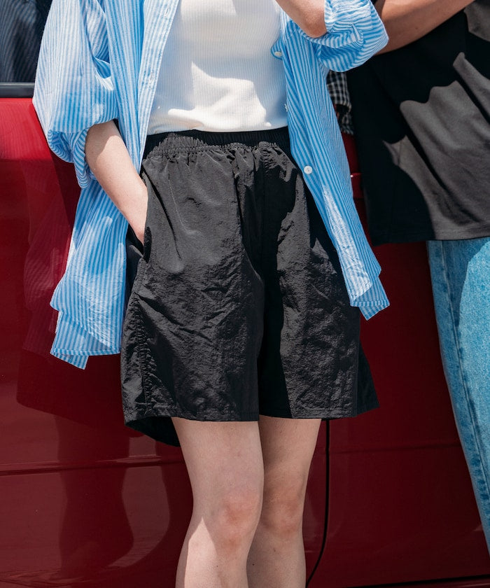 與日本連鎖便利商店品牌 Lawson 聯名開發的特別款式,簡約設計的可收納式輕便短褲,可將本體收納進口袋中,非常適合夏日出遊或旅行時隨身攜帶。採用鬆緊腰頭設計,並搭配以 Lawson 品牌配色為靈感設計的抽繩,使用輕量、接觸冷感、吸濕速乾等機能的尼龍面料,在悶熱季節也能穿得舒適,膝上長度、俐落的版型設計,提供男女皆宜的2種尺寸選擇,是一件能夠輕鬆融入各種穿搭的萬用單品。