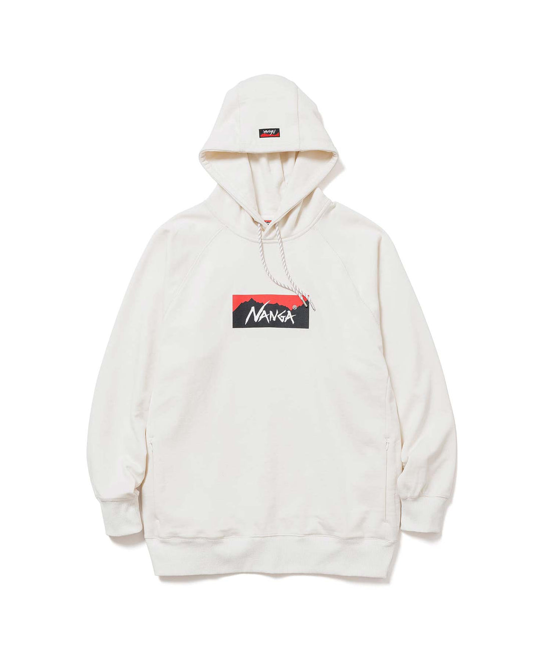 採用質地柔滑、觸感細膩的再生棉 Ferre Yarn(フェレーヤーン)面料,內裏採用裏毛設計,衣服印有 NANGA BOX 標誌圖案,插肩袖設計搭配略微寬鬆的剪裁,提供良好穿著舒適度,另外側邊有拉鍊口袋設計,兼具機能性與俐落外觀,單穿或作為內搭疊穿其他單品皆適合。