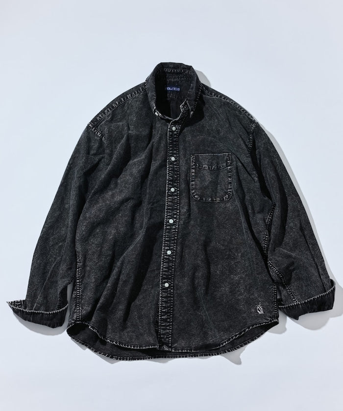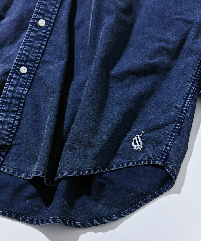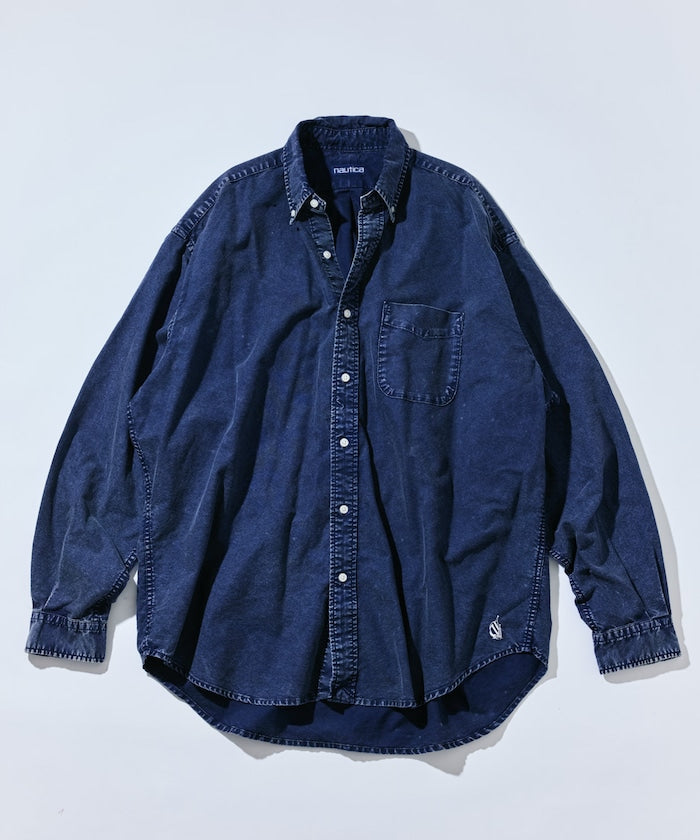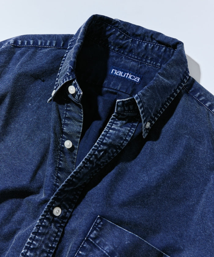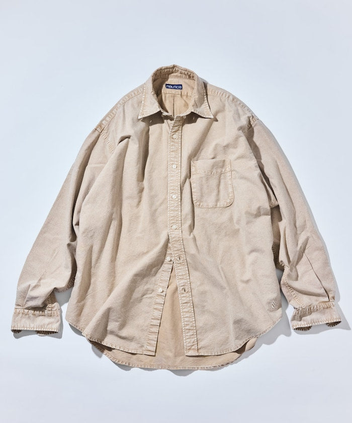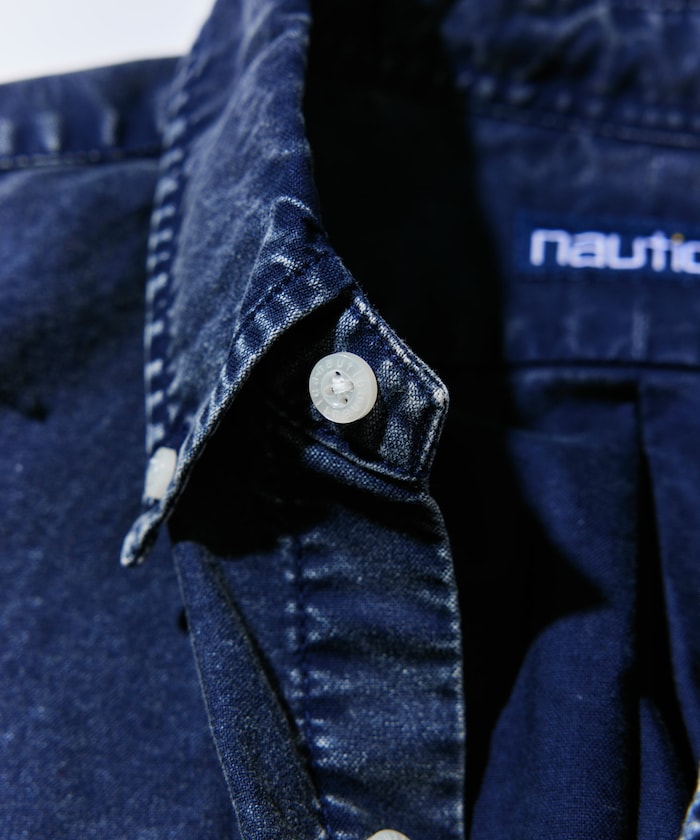 以 NAUTICA 經典牛津布襯衫為基礎,經過後染加工,營造出如同古著般的復古質感與自然褪色效果,氛圍感十足,採用寬鬆剪裁設計,展現休閒自在的穿搭風格,下擺處繡有 NAUTICA 經典的船帆刺繡。
