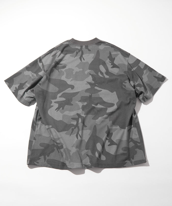 選用厚磅天竺棉面料製成,整件採用經典迷彩印刷設計,並經過刷毛處理及水洗加工,呈現自然褪色的復古質感。左胸口袋繡有同色系 NAUTICA 標誌,結合印刷與刺繡工藝,營造出層次豐富的視覺效果,左側衣身縫線上設有反光布標,低調展現細節。