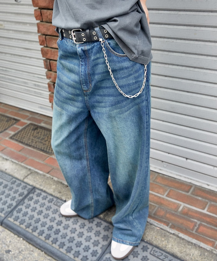 採用純棉材質,四季皆宜,穿著舒適透氣,經過特殊加工處理,展現復古的仿舊質感,仿褪色效果與古著單品相得益彰,打造自然穿搭層次,褲腳恰到好處地堆疊在鞋面上,營造出適度的份量感與時髦氛圍。