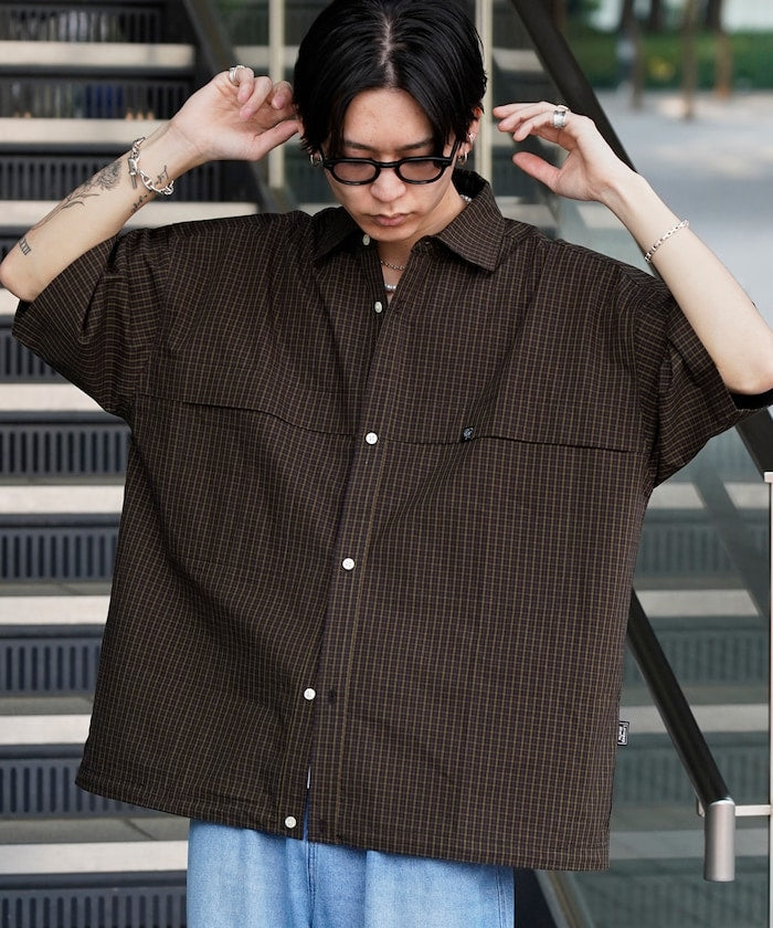 PUBLUX Short sleeve drawstring check shirt 短袖口袋襯衫