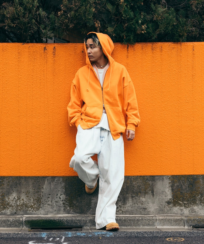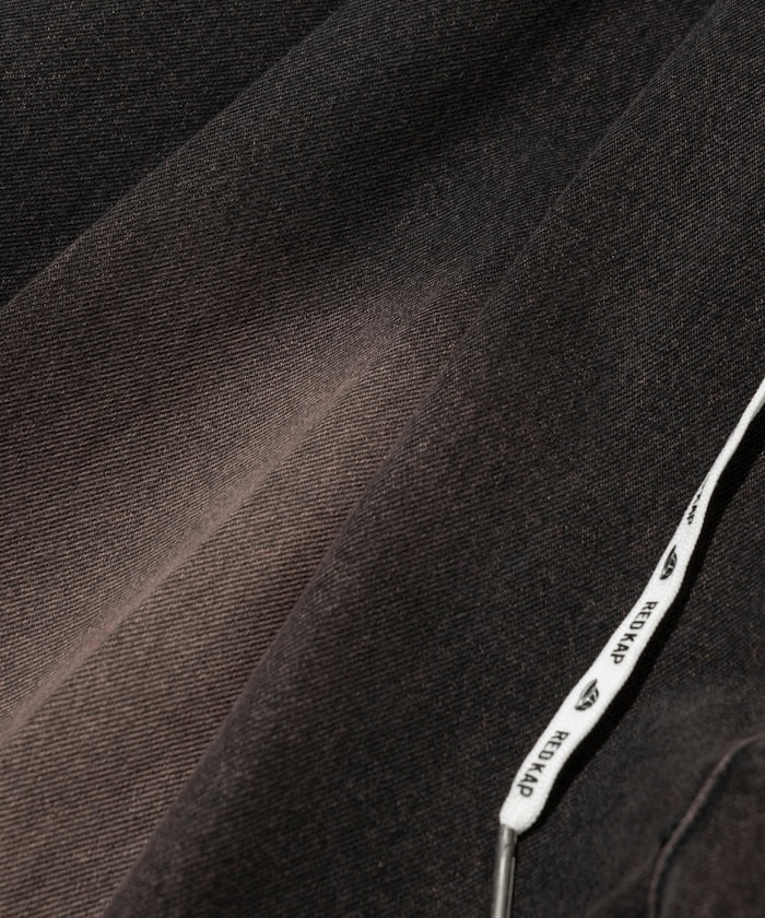 採用厚實感十足的 11.5oz 丹寧布料,經過仿舊水洗與染色處理,營造復古氛圍,以 RED KAP 的代表作 PT-38 褲款為基礎,重新設計為適合夏季的寬鬆剪裁長褲,大幅增加褶皺設計,打造立體寬版輪廓,左側口袋上特別復刻 90 年代丹寧熱潮時期的 RED KAP 專用標籤,細節滿滿,腰部搭配品牌Logo的抽繩設計,方便調整尺寸、穿脫便利。