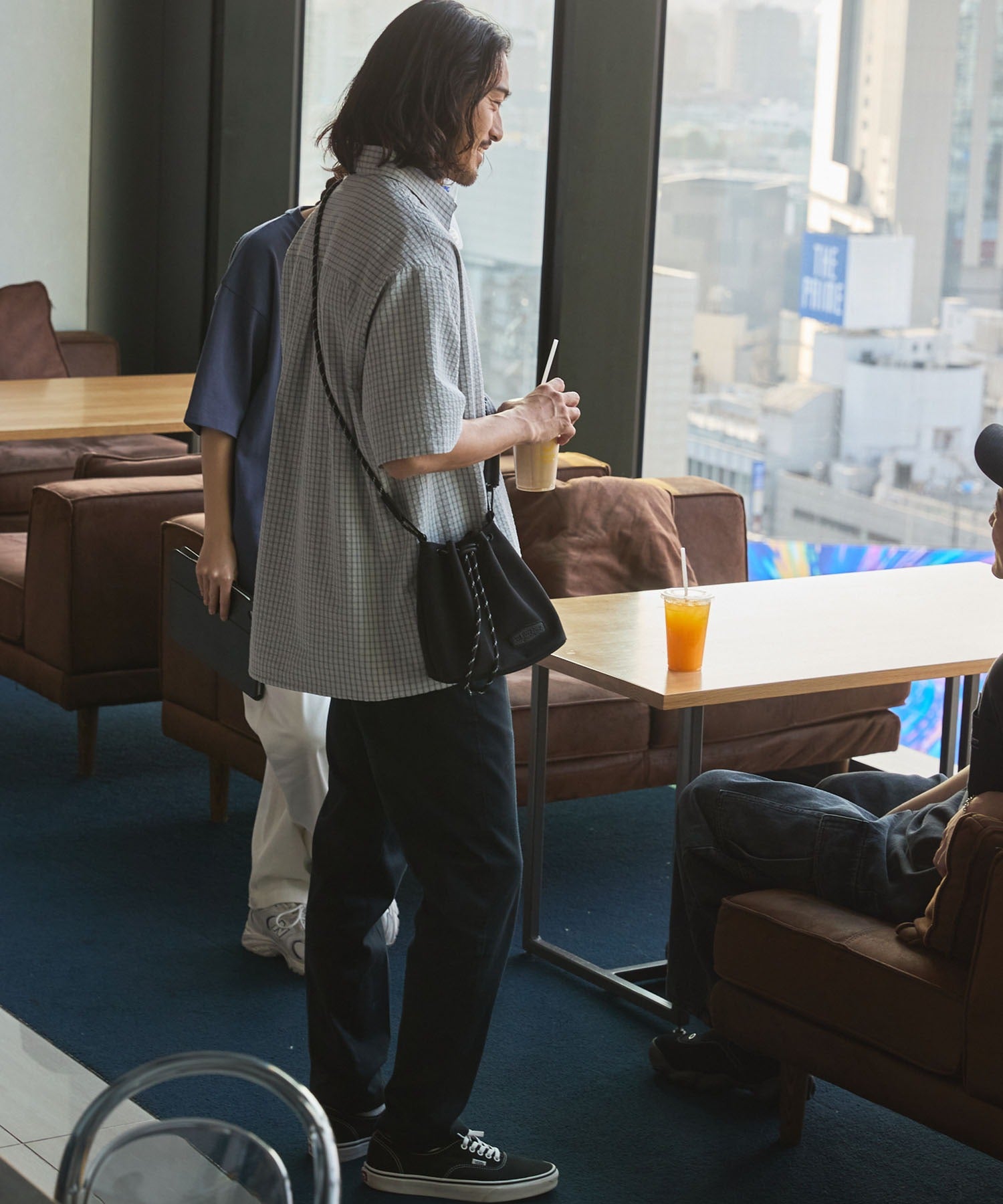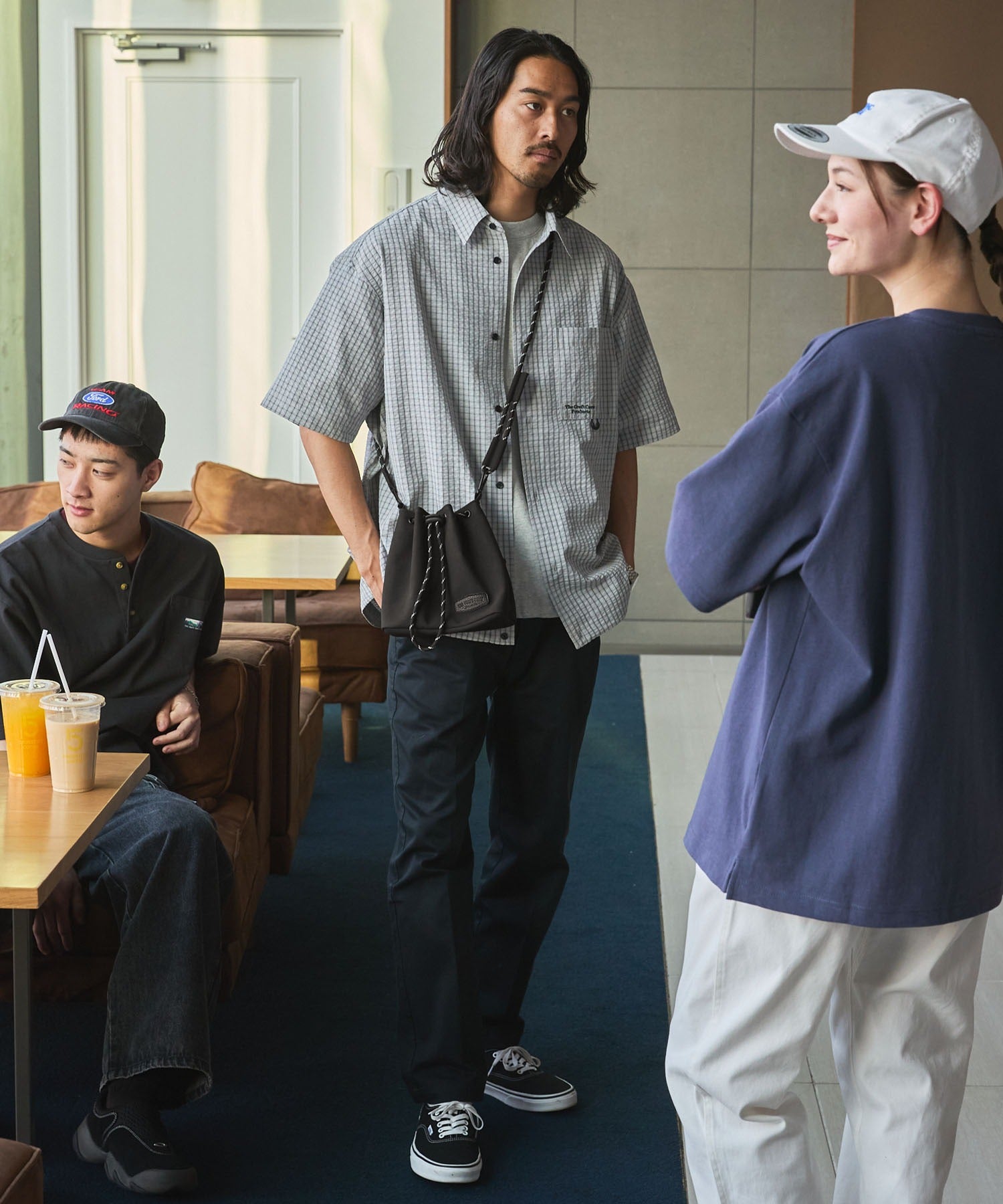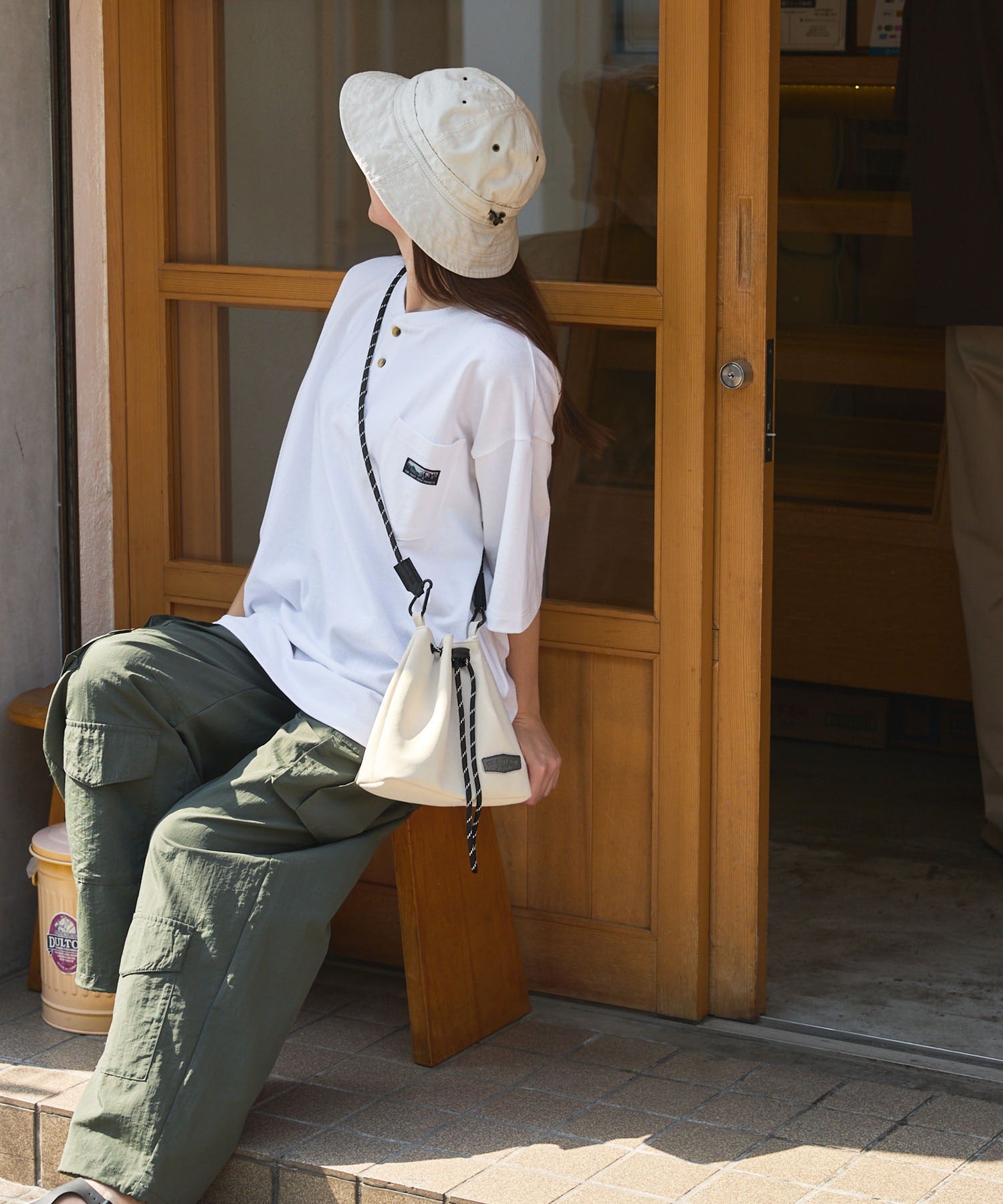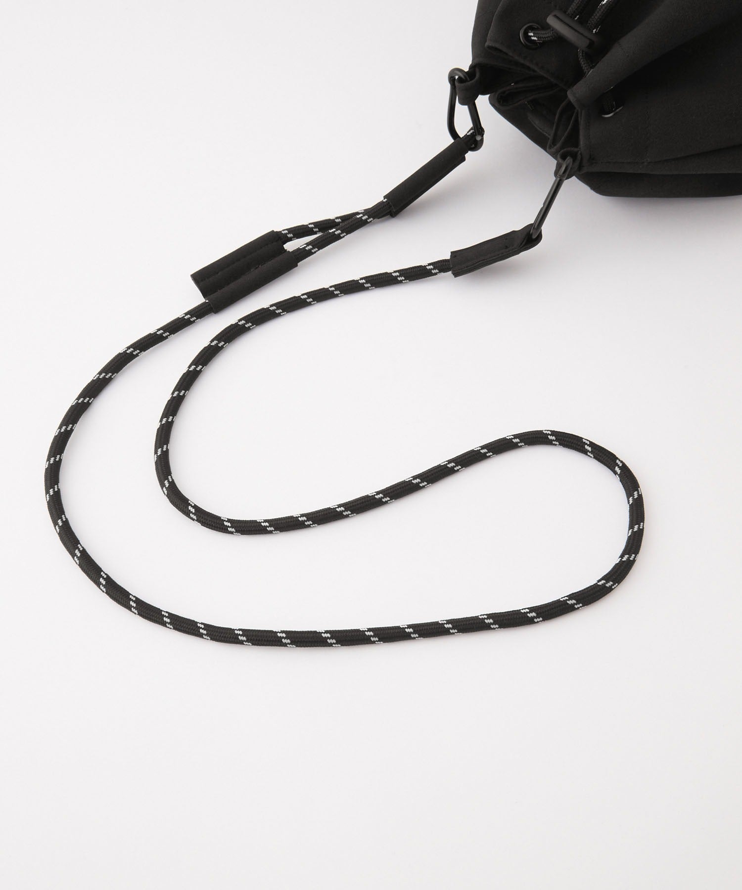 包身使用麂皮質感的合成皮革搭配品牌皮革品牌標誌,經過防潑水加工處理,不易沾染污漬,就算下雨天也能安心使用。不僅可作為肩背包使用,拆下背帶後也能作為巾著袋使用,肩帶採用耐用性高、同時也是設計亮點的傘繩材質,並使用方便拆卸的登山扣設計,內側設有拉鍊口袋,能安心收納鑰匙、耳機等小物,包款尺寸專為「只想帶手機和錢包等少量物品」的外出需求所設計,大小剛剛好,是一款男女皆可使用的中性單品。