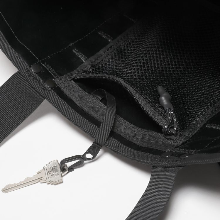 一款方便分類收納的肩背托特包,有主收納空間與外側口袋,材質具有優異的耐摩擦性與防潑水性,設有可調式肩背帶與手提把手,可依需求切換使用方式,主收納空間為簡約的一室構造,內部附有網狀口袋,便於收納小物,外部還設有織帶環,可依照使用方式靈活調整、擴充配件,是一款兼具實用性與機能性的包款。