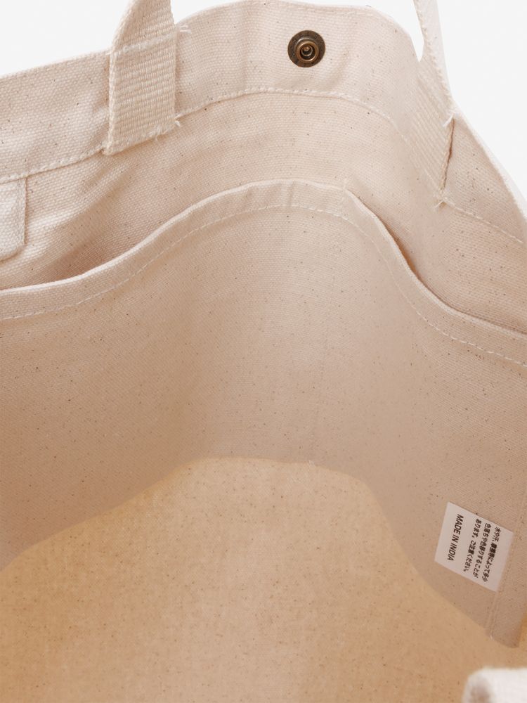 採用環保有機棉材質製成的托特包,尺寸為中型容量設計,無論是通勤上學、日常採買,或是露營、音樂祭等戶外活動都非常適合使用,有機棉特有的自然柔和質感也是其魅力之一,開口處為磁扣式設計,能減少物品掉出的風險,內部附有多功能口袋及可吊掛小物的連接環,便利實用,可調節長度的肩背帶搭配原創品牌標誌調節扣設計,細節滿分。