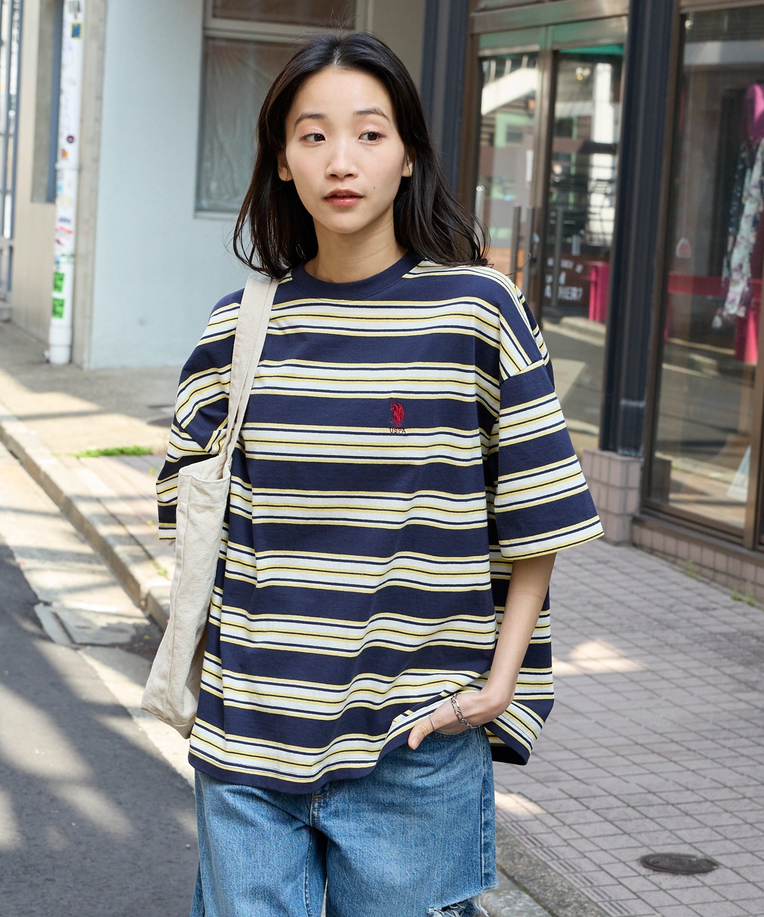 U.S. POLO ASSN. 刺繡LOGO條紋短袖上衣