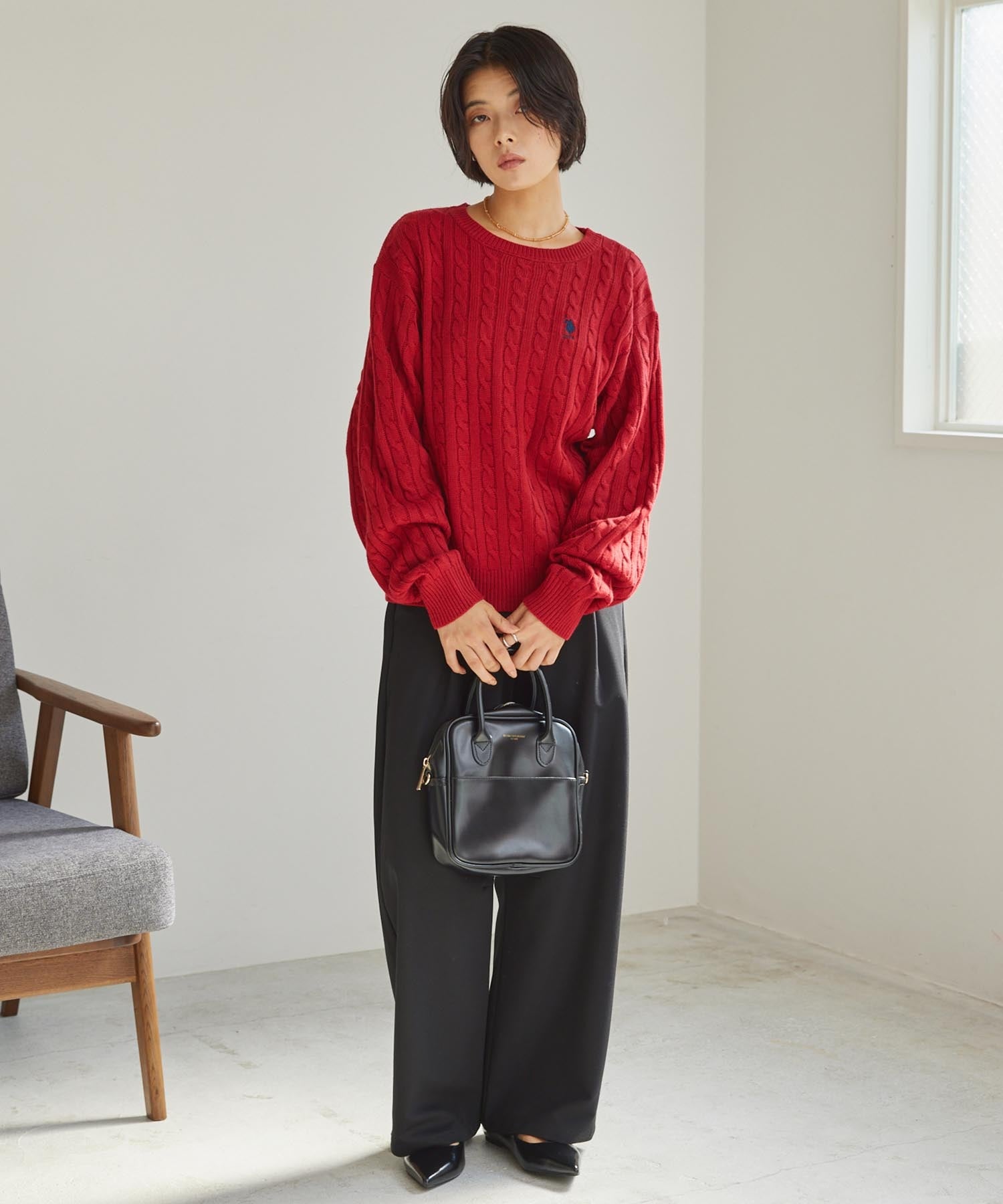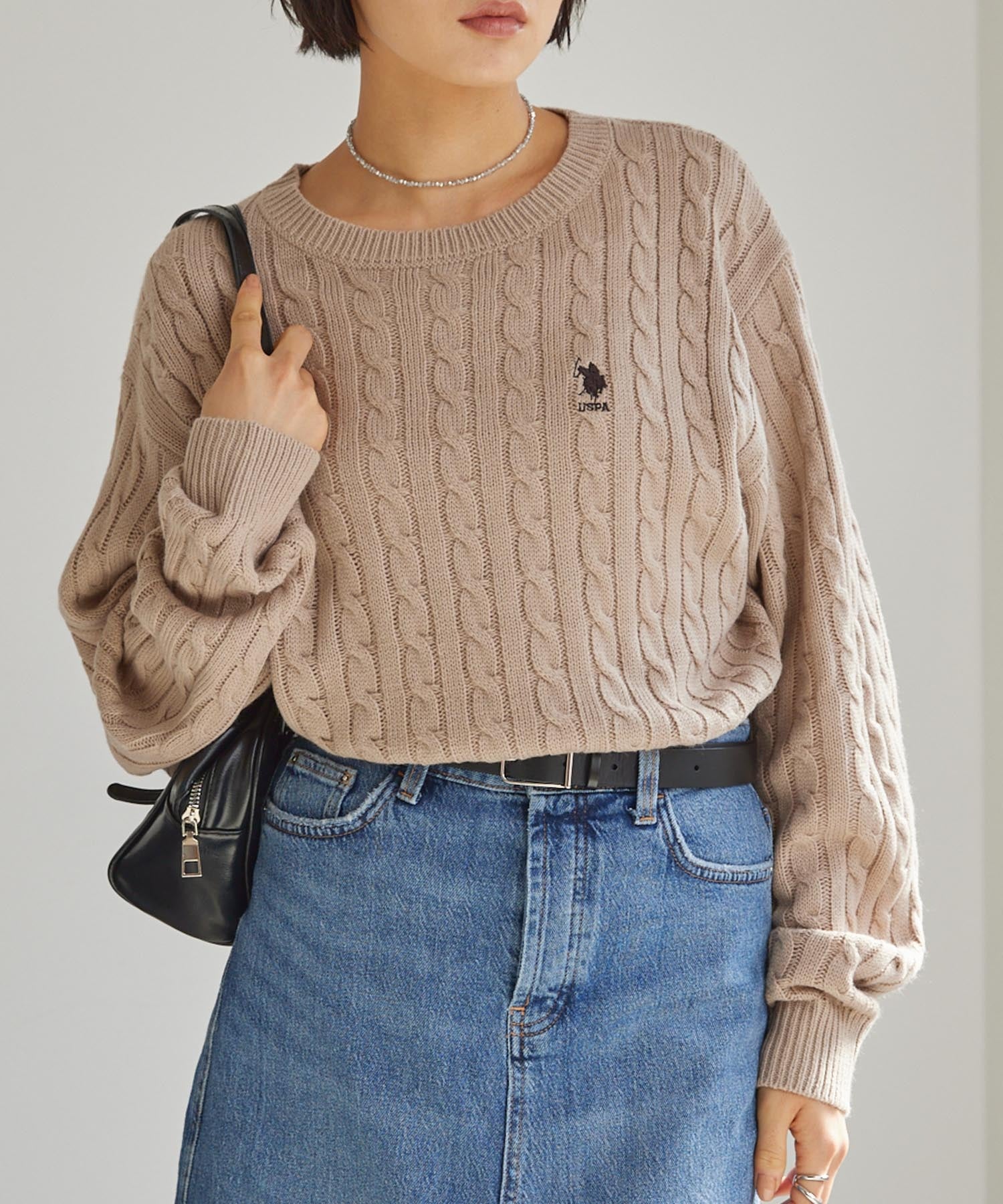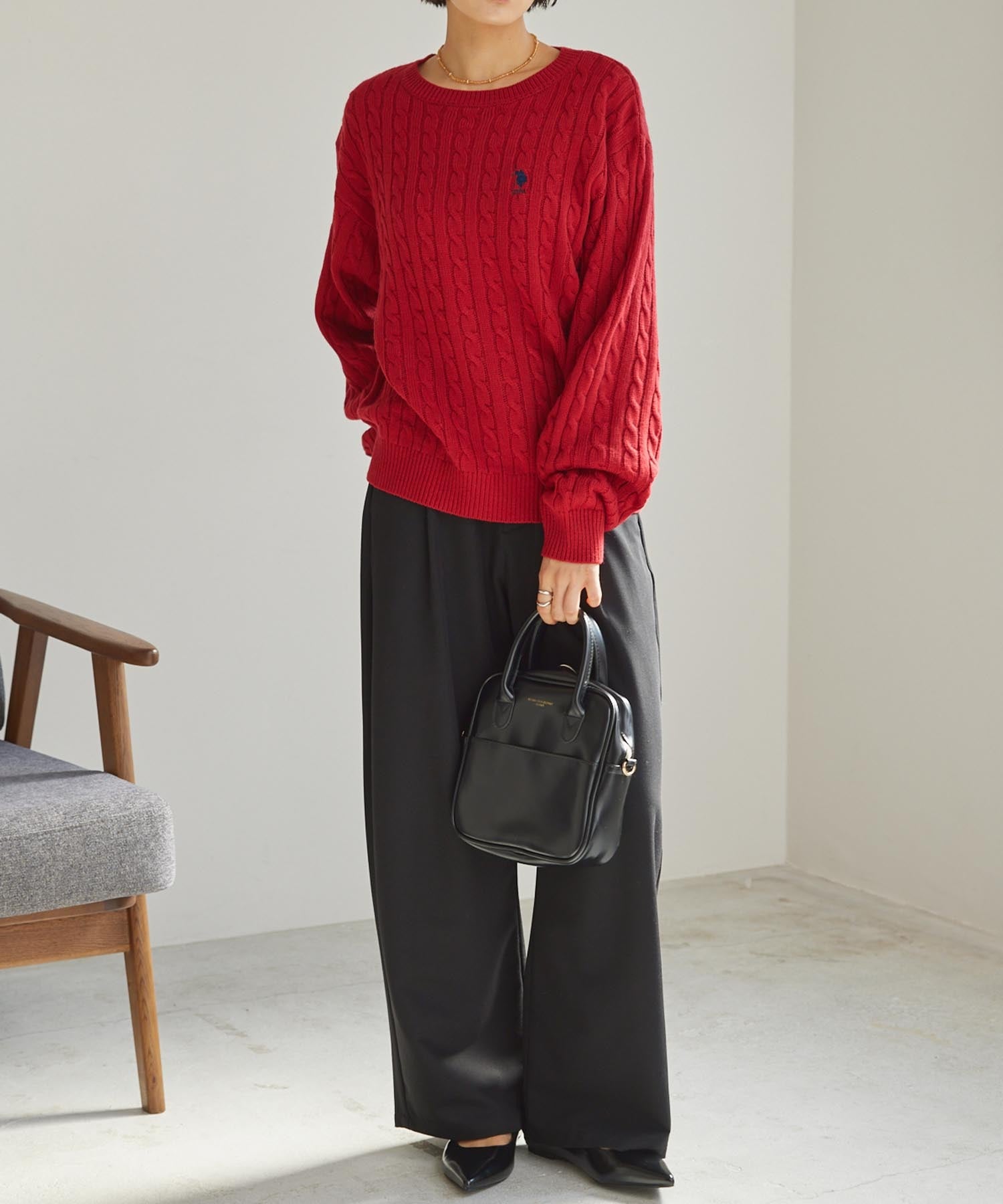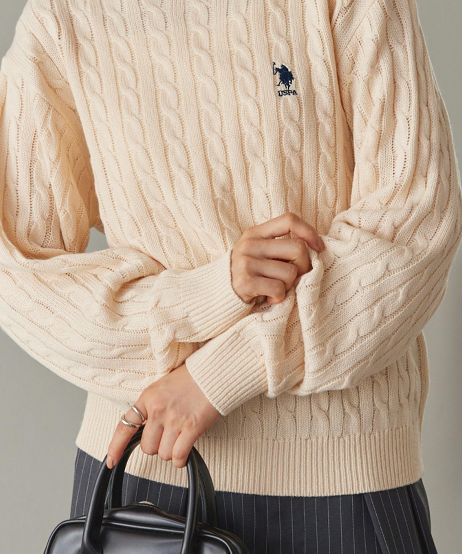 U.S. POLO ASSN. 刺繡LOGO 麻花針織衫