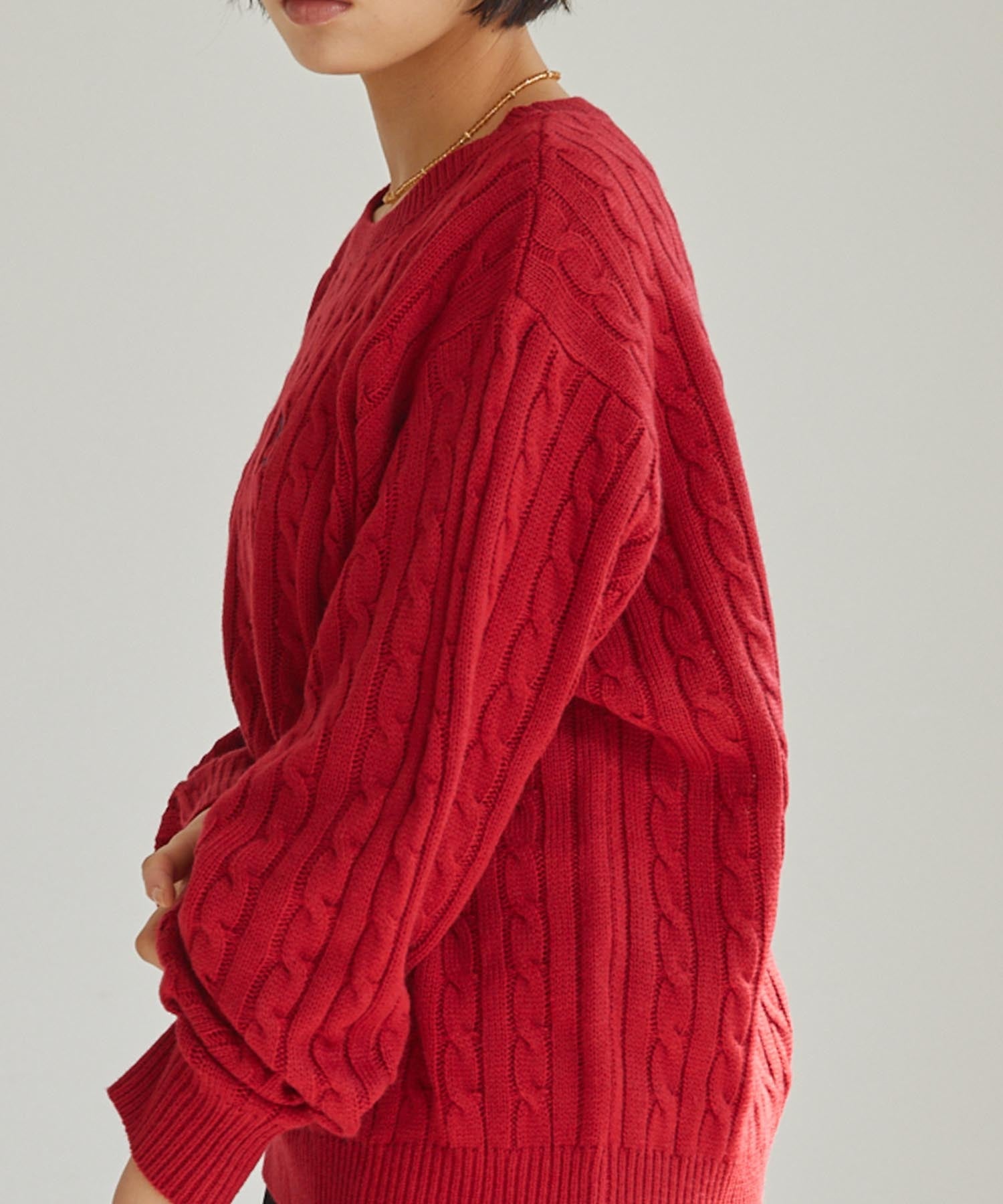 柔軟厚實、帶有隨性質感的 MONO-MART 獨家聯名麻花針織衫,胸前的品牌刺繡成為造型亮點,領口採用百搭的圓領設計,可輕鬆融入各種穿搭,領口、袖口與下擺皆為彈性羅紋編織,貼合度佳。保暖蓬鬆的厚實針織,適合秋冬季節穿搭,以柔軟、具厚度的麻花編織呈現,手感細膩、穿著舒適又保暖,無論單穿或作為內搭都能展現存在感。