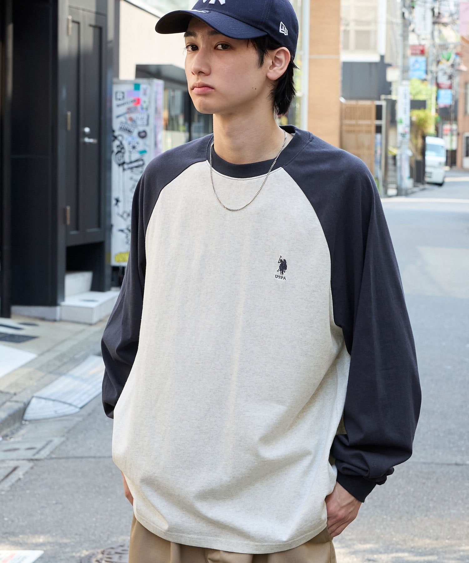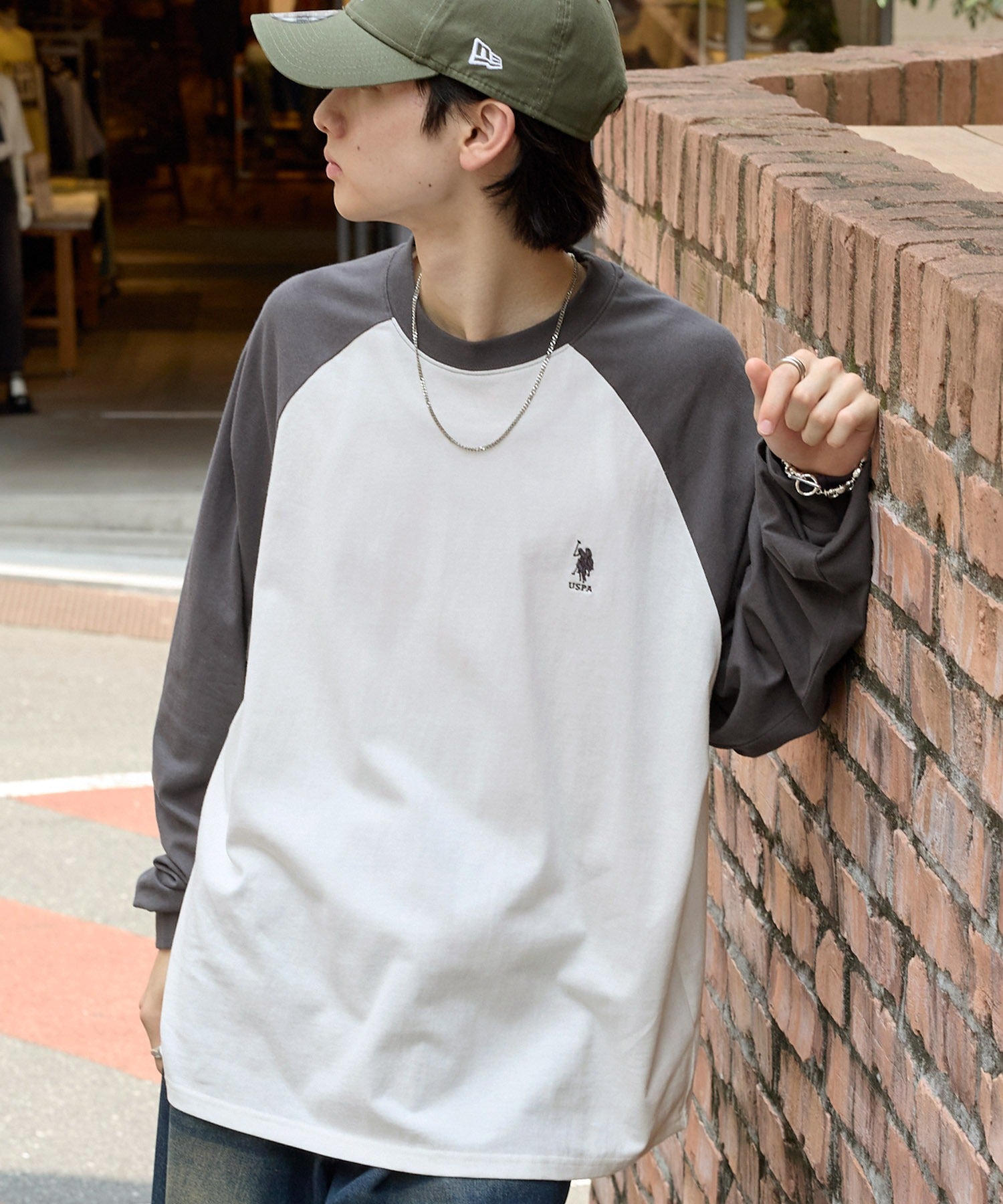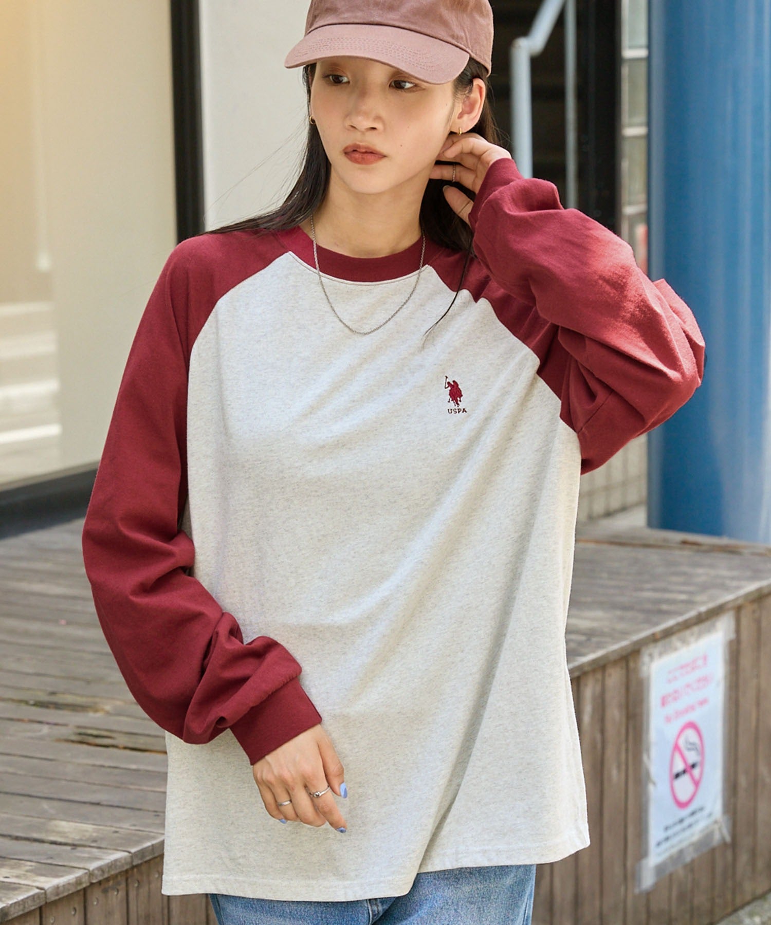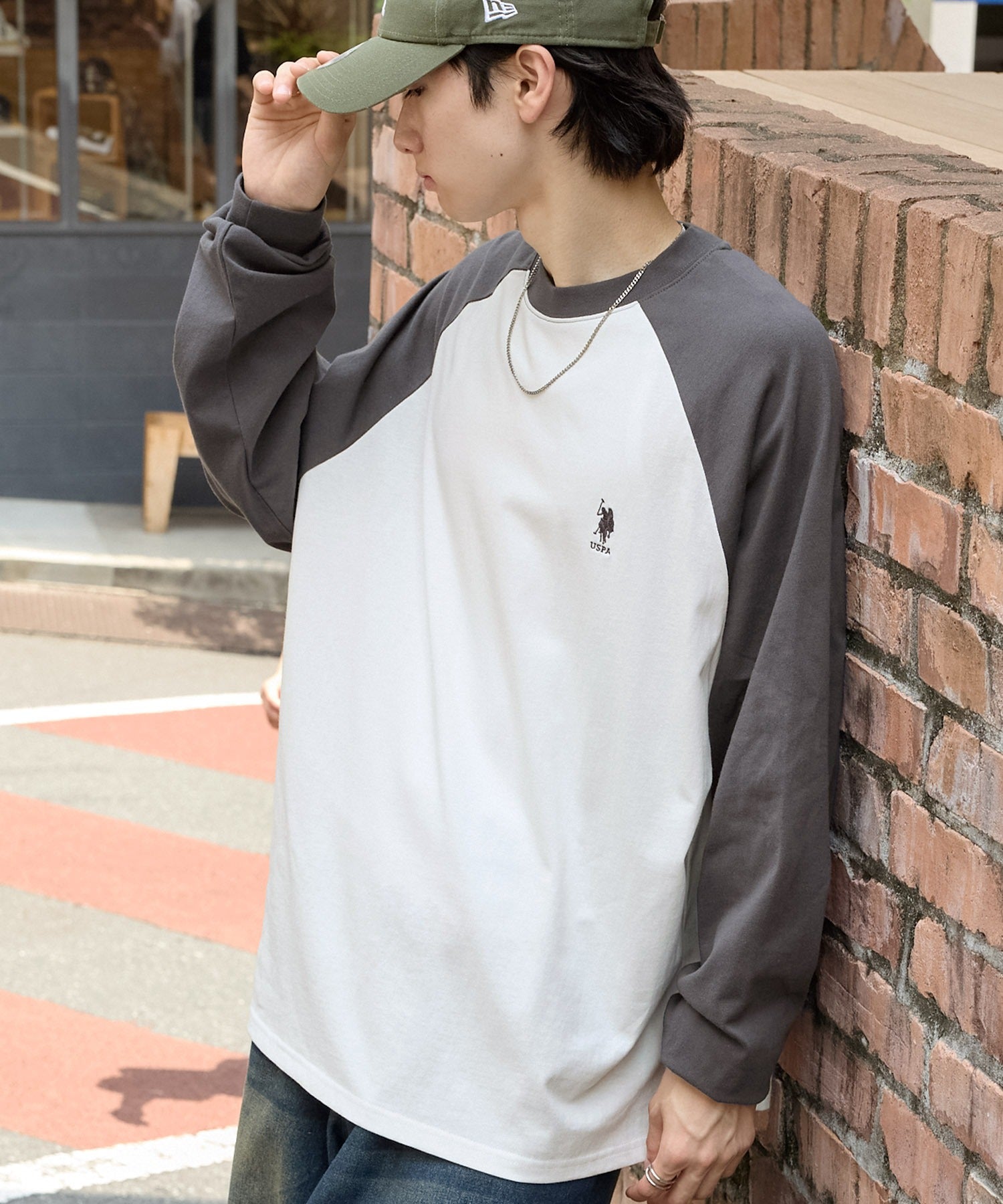 U.S. POLO ASSN. 限定款 刺繡LOGO拼色插肩寬版長袖T恤上衣