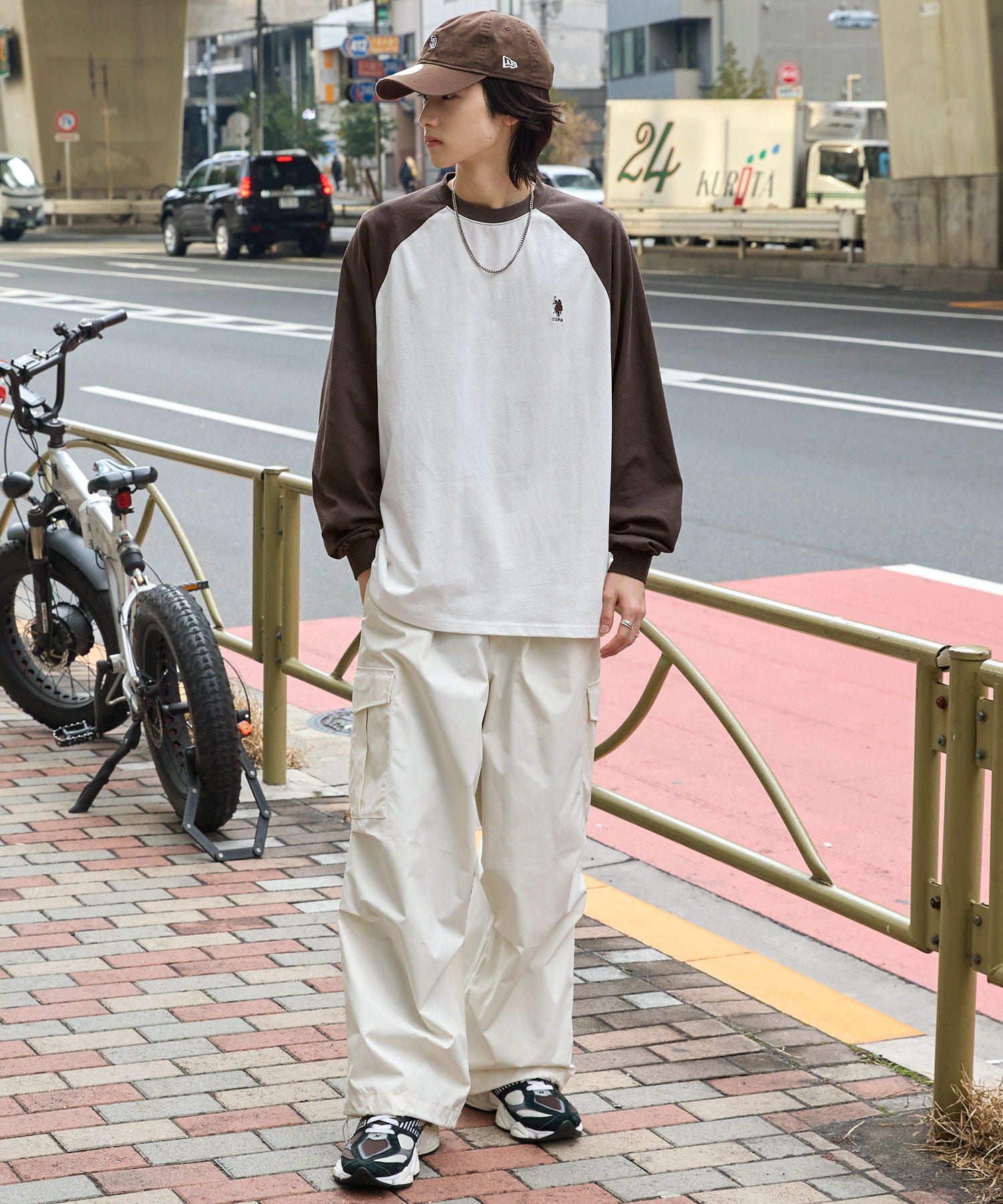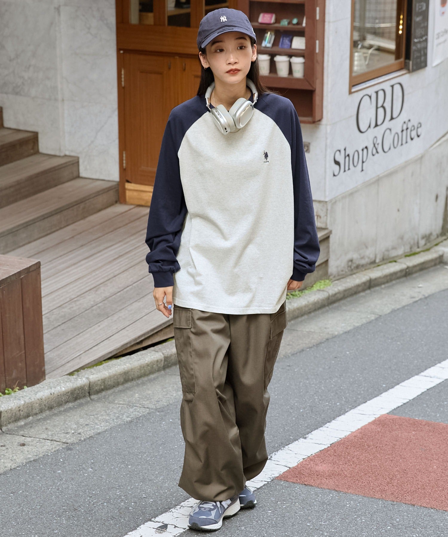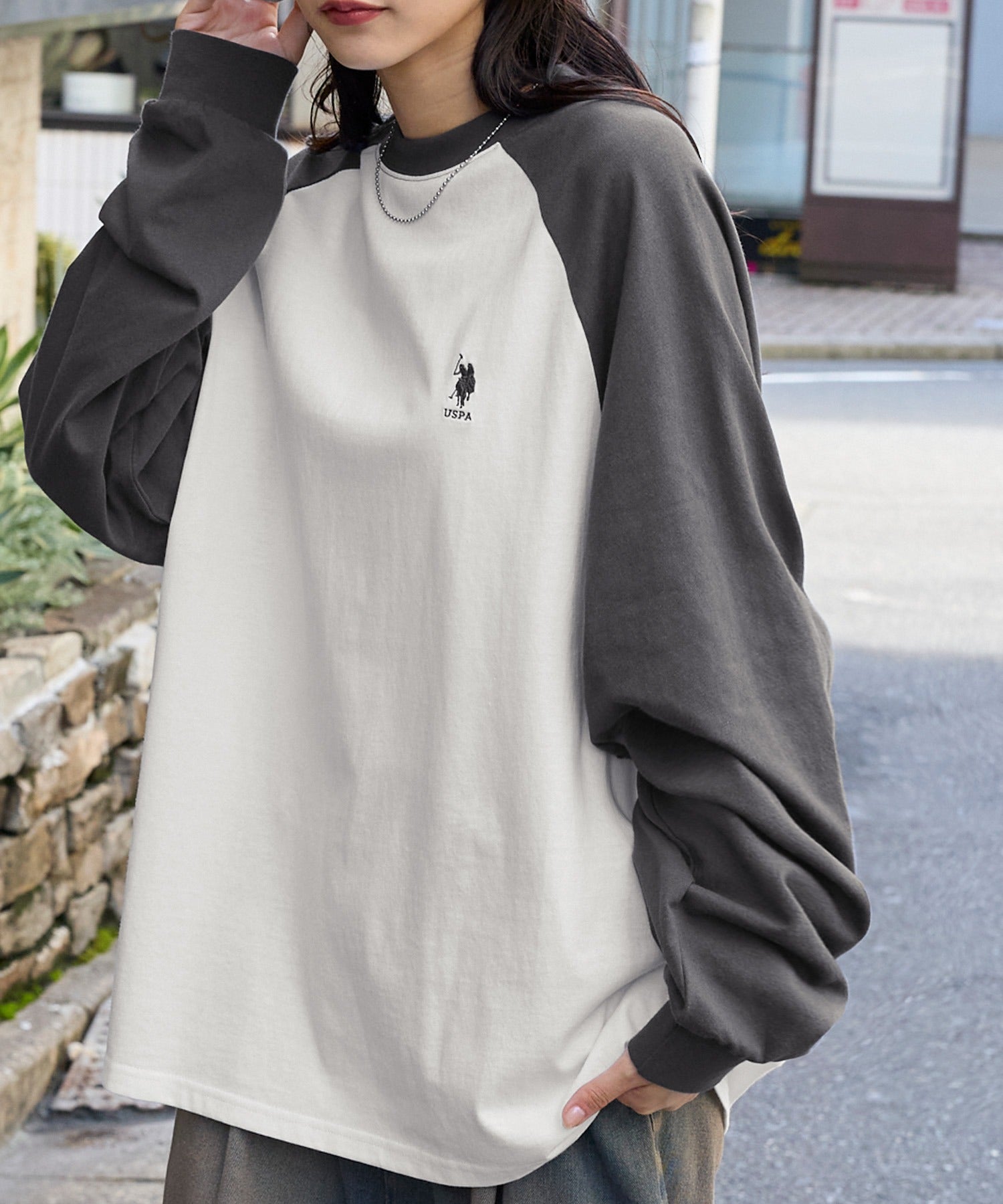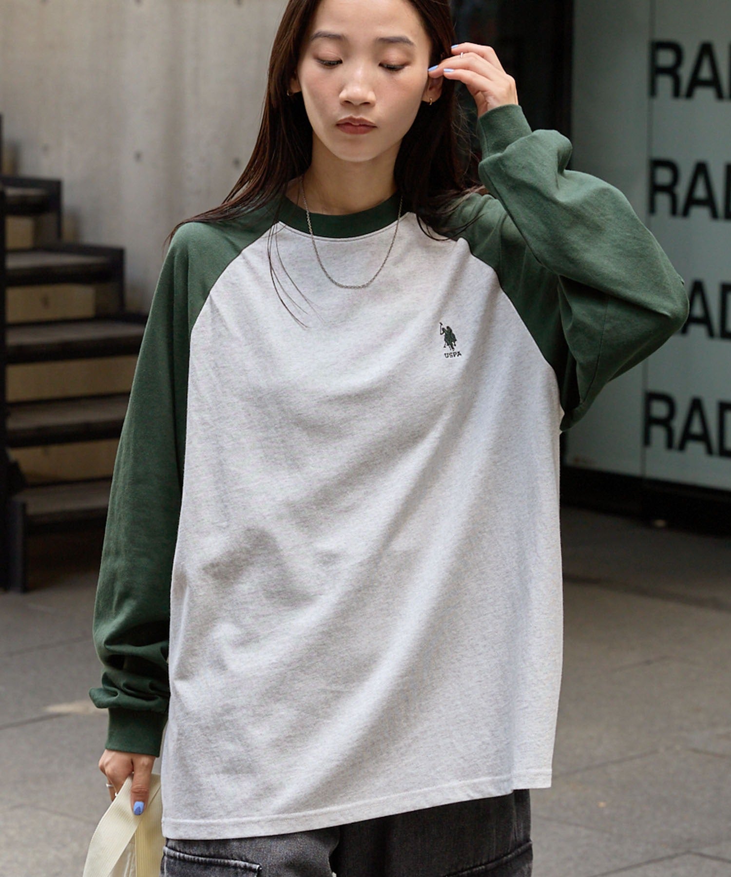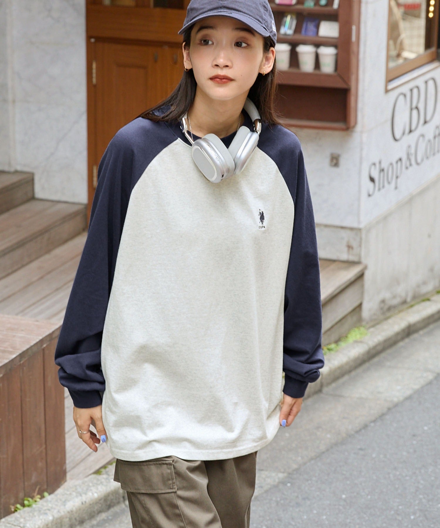 U.S. POLO ASSN. 限定款 刺繡LOGO拼色插肩寬版長袖T恤上衣