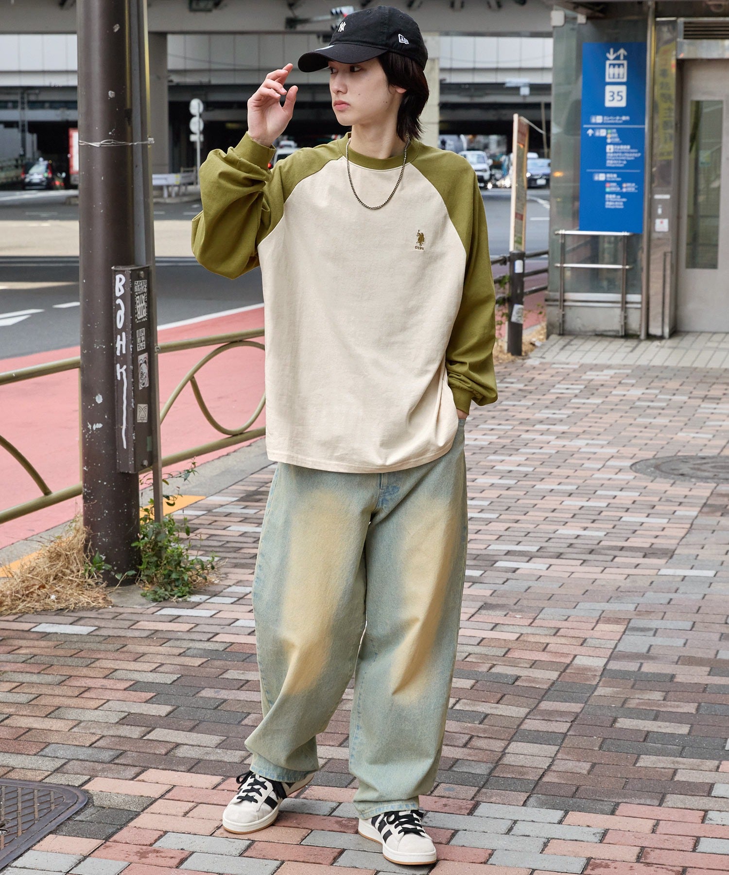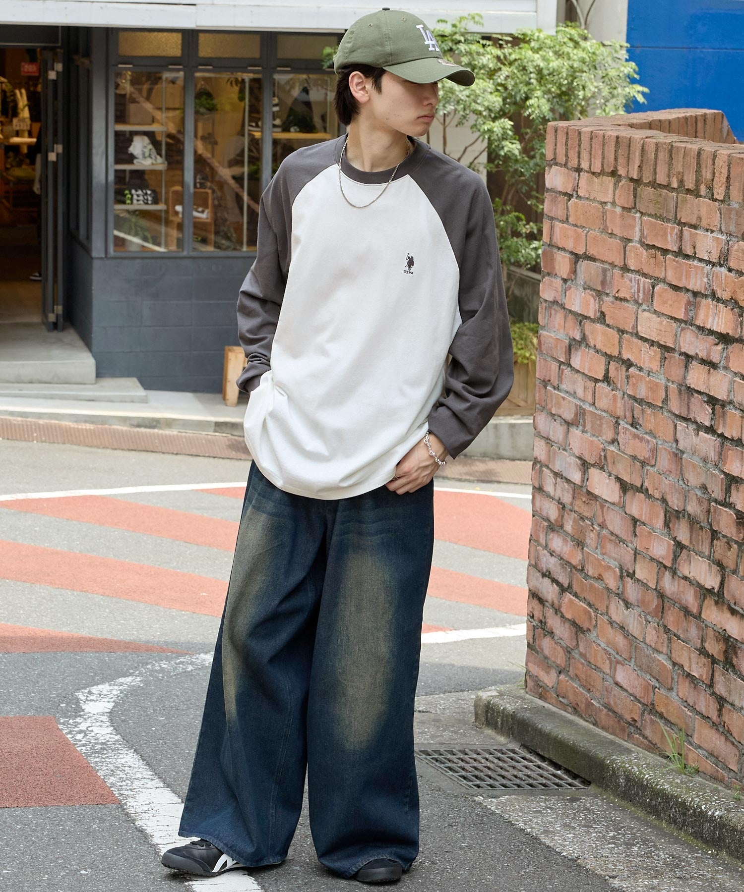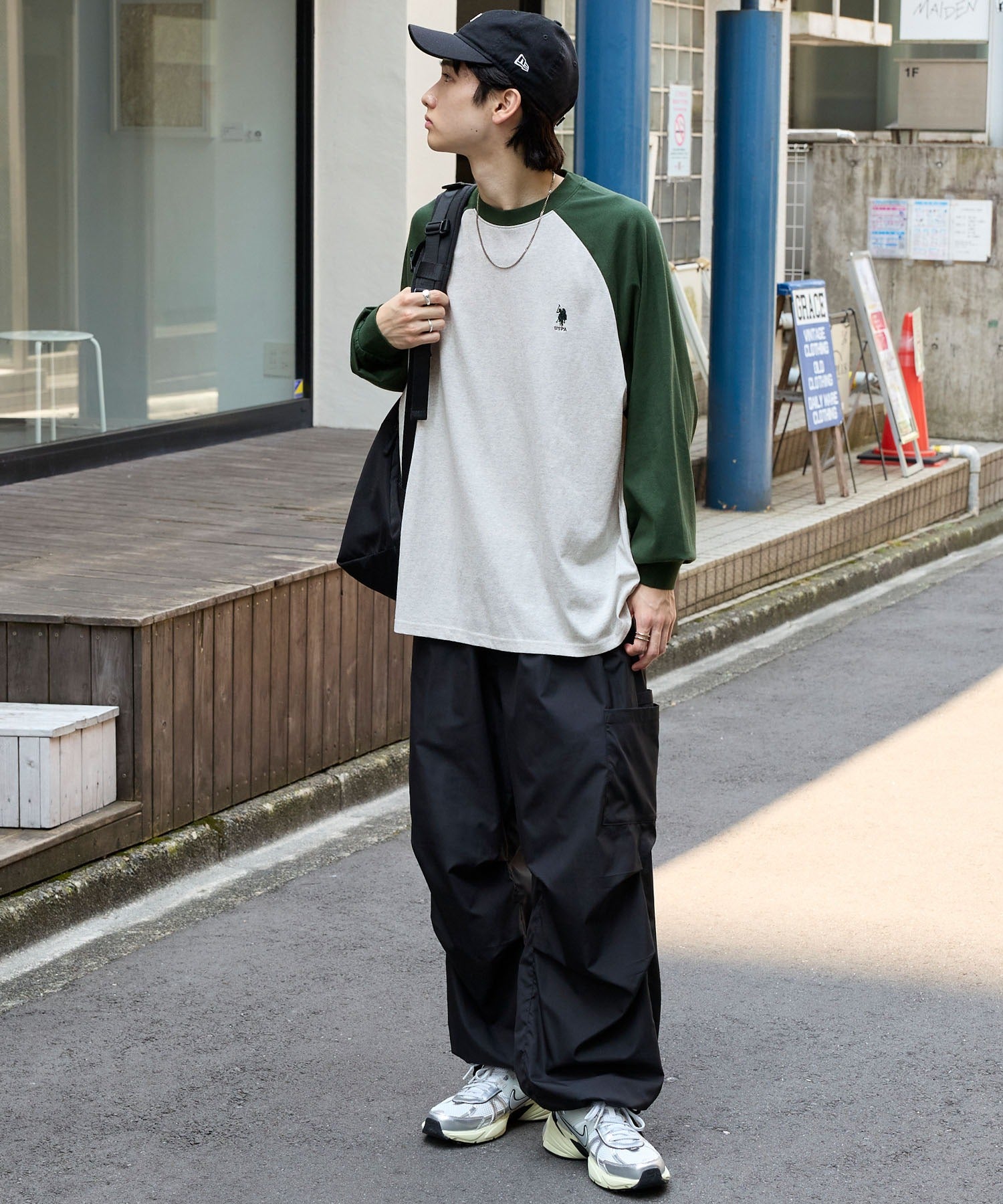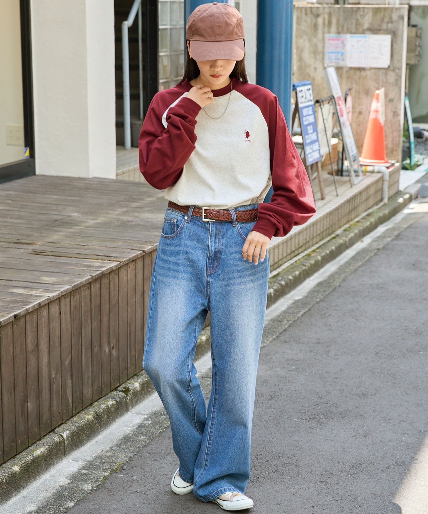 U.S. POLO ASSN. 限定款 刺繡LOGO拼色插肩寬版長袖T恤上衣
