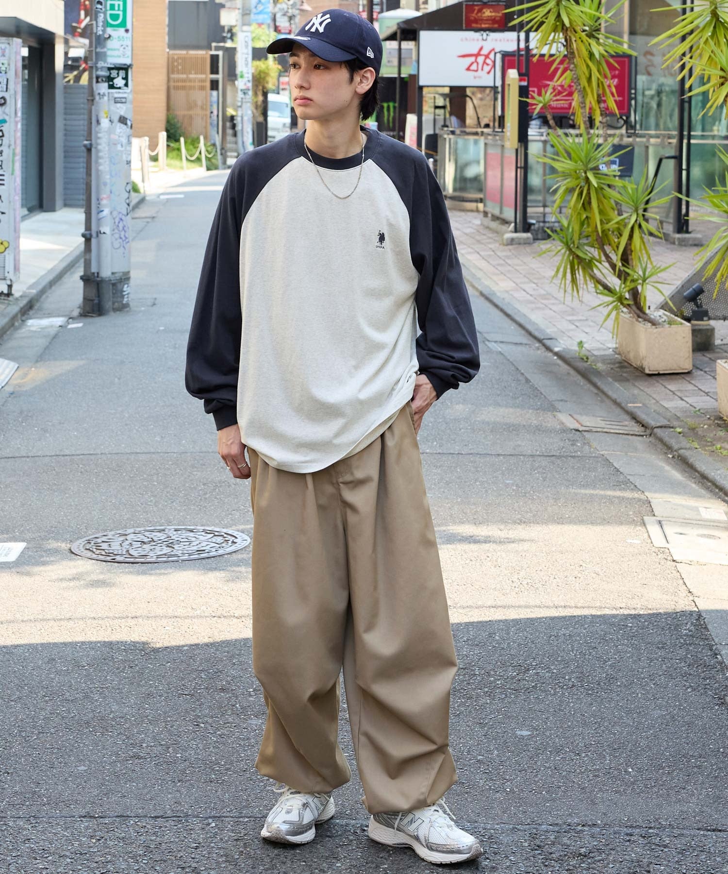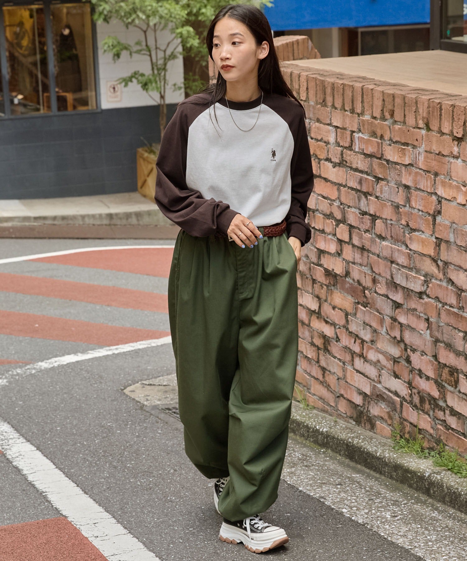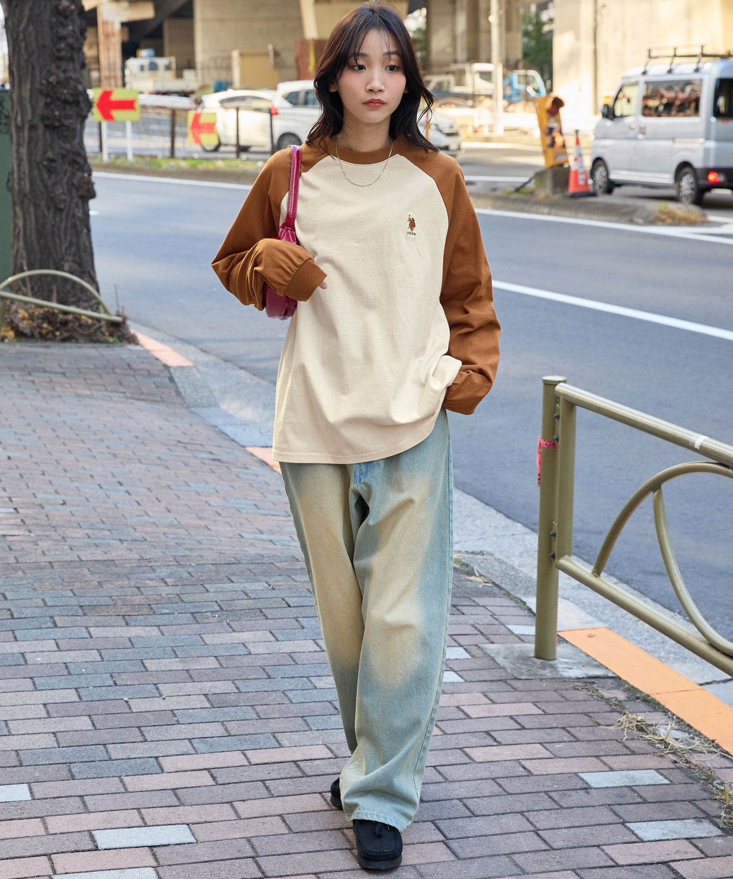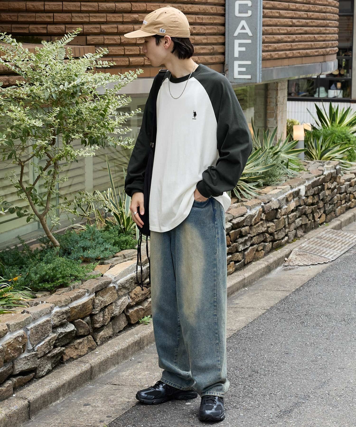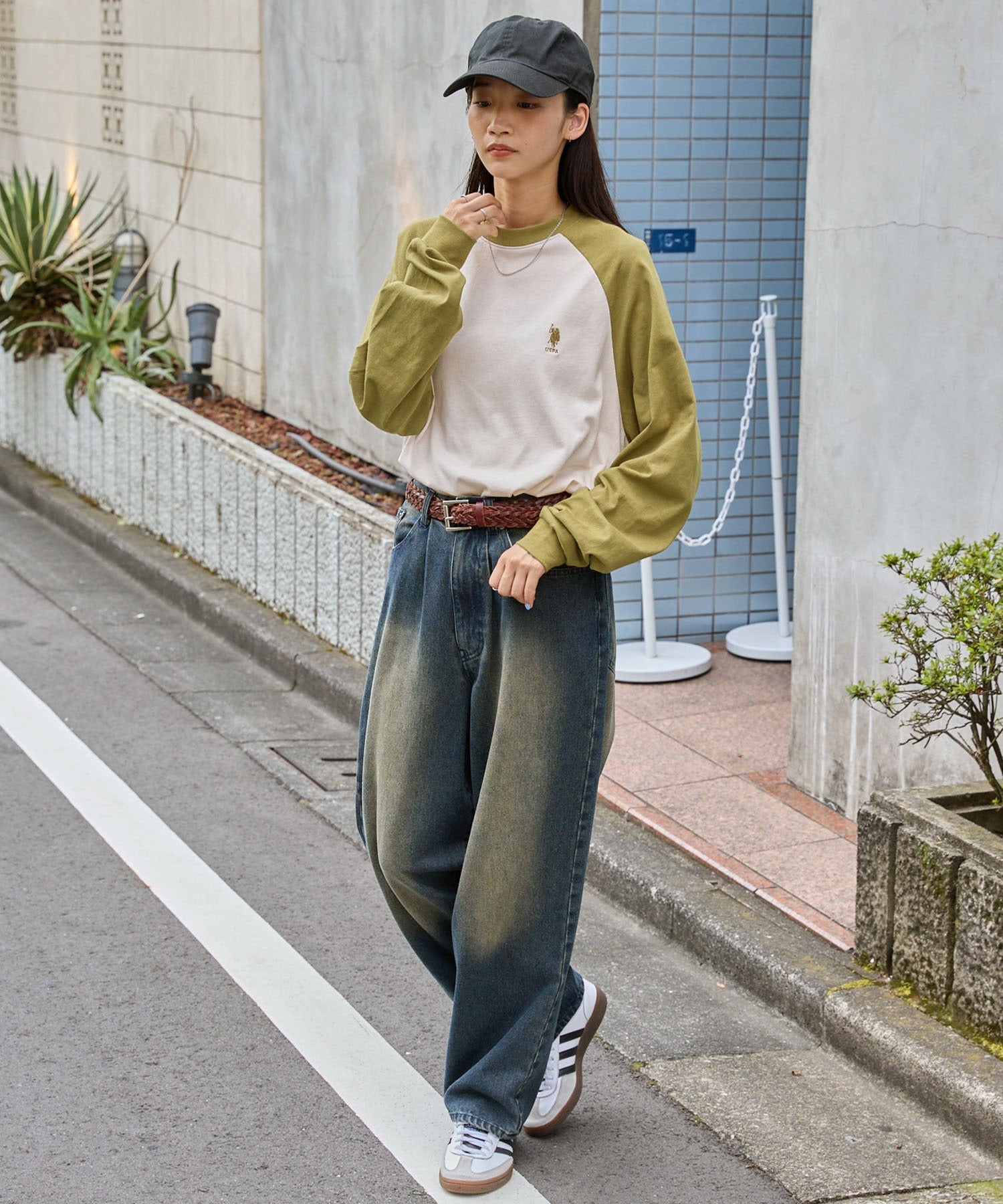 U.S. POLO ASSN. 限定款 刺繡LOGO拼色插肩寬版長袖T恤上衣