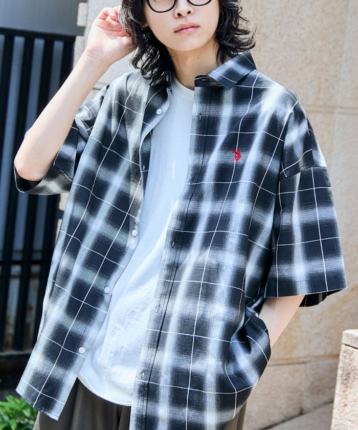 U.S. POLO ASSN. one-point embroidered check short sleeve shirt 限定刺繡格紋短袖襯衫
