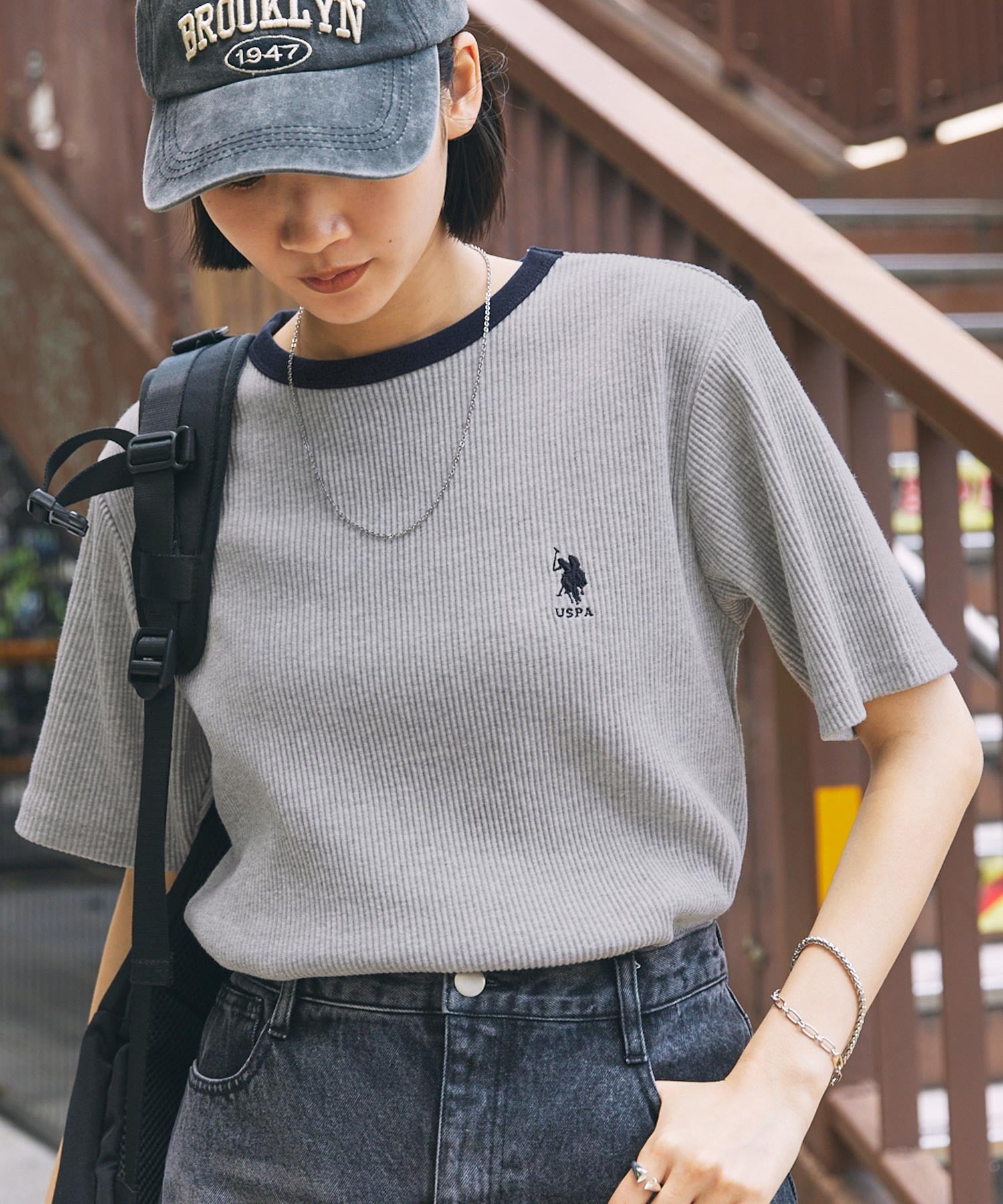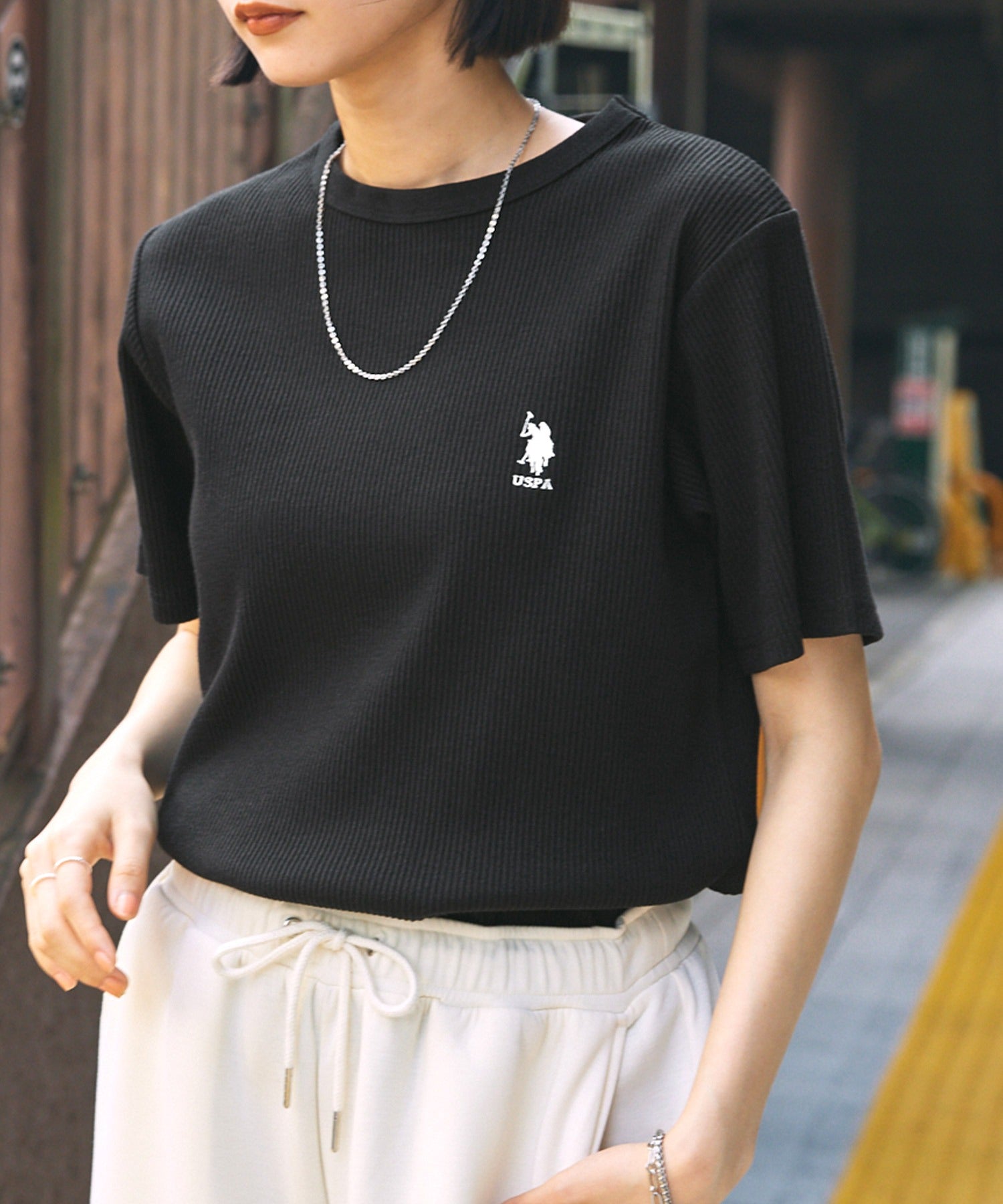 U.S. POLO ASSN. one-point embroidery T-shirt 羅紋短袖上衣